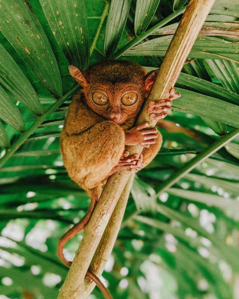 The Philippine tarsier, known locally as mawumag in Cebuano and other Visayan languages, and magô in Waray, is a species of tarsier endemic to the Philippines. It is found in the southeastern part of the archipelago, particularly on the islands of Bohol, Samar and Leyte. It is a member of the approximately 45-million-year-old family Tarsiidae, whose name is derived from its elongated “tarsus” or ankle bone. Formerly a member of the genus Tarsius, it is now listed as the only member of the genus Carlito, a new genus named after the conservationist Carlito Pizarras. ⠀
